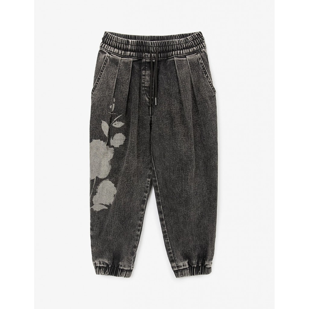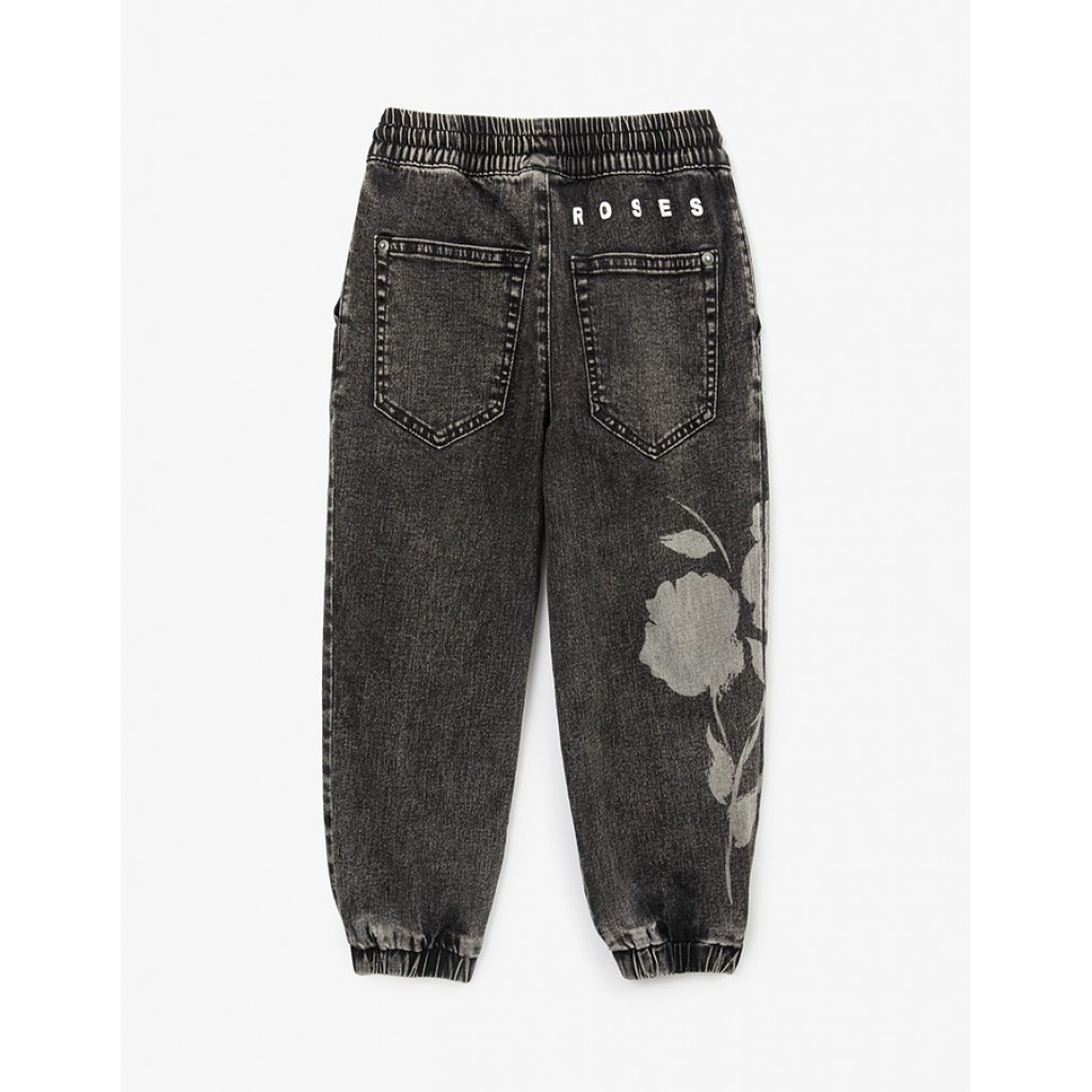 Джинсовые брюки-джоггеры с поясом и манжетами на резинке прекрасно дополнят осенние аутфиты девочки. Джоггеры из мягкого хлопкового денима с варкой и потертостями подчеркнут динамику спортивного стиля, став практичным и функциональным решением на каждый день. Выбеленный цветочный принт акцентирует внимание на интересном небанальном дизайне модели, выделяющим джинсовые джоггеры среди однотонных аналогов. Джинсы имеют четыре кармана.