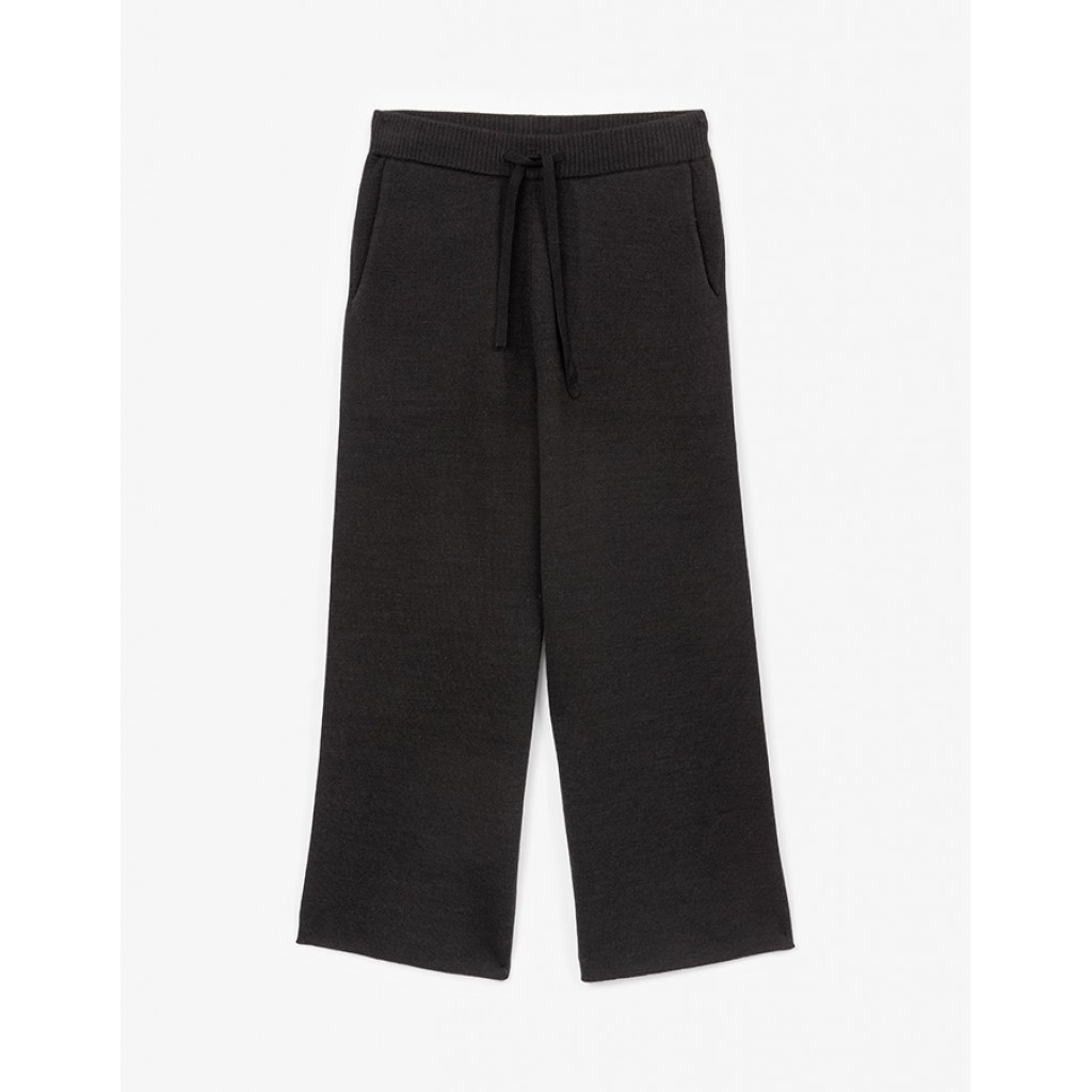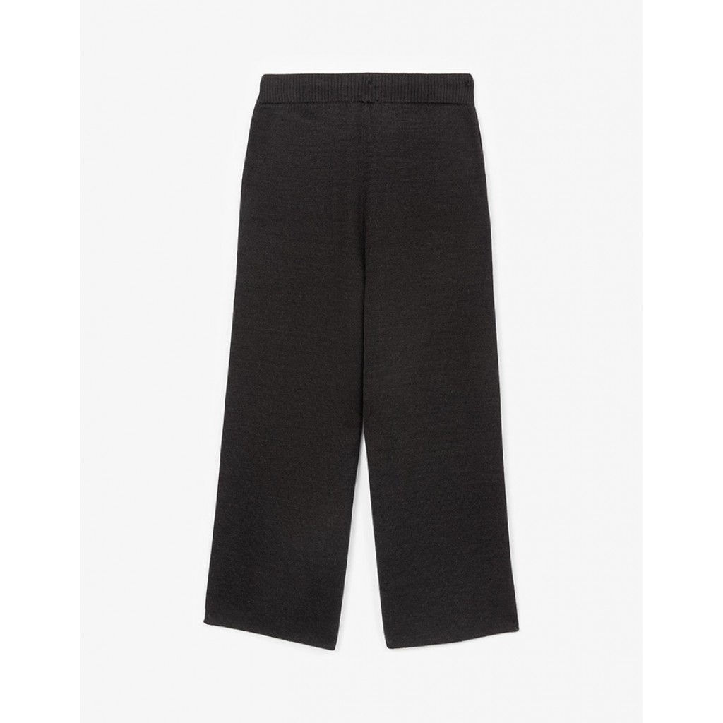 Вязаные брюки c высокой посадкой силуэта палаццо - отличный вариант для сухой и прохладной погоды межсезонья. Лаконичный форма без лишних деталей, мягкость, пластичность, практичность делают брюки незаменимыми для создания непринужденных и расслабленных образов девочки. Брюки связаны из плотной и формоустойчивой полушерстяной пряжи. Пояс на резинке с кордами создает важный комфорт в эксплуатации вещи. Брюки имеют наклонные боковые карманы.