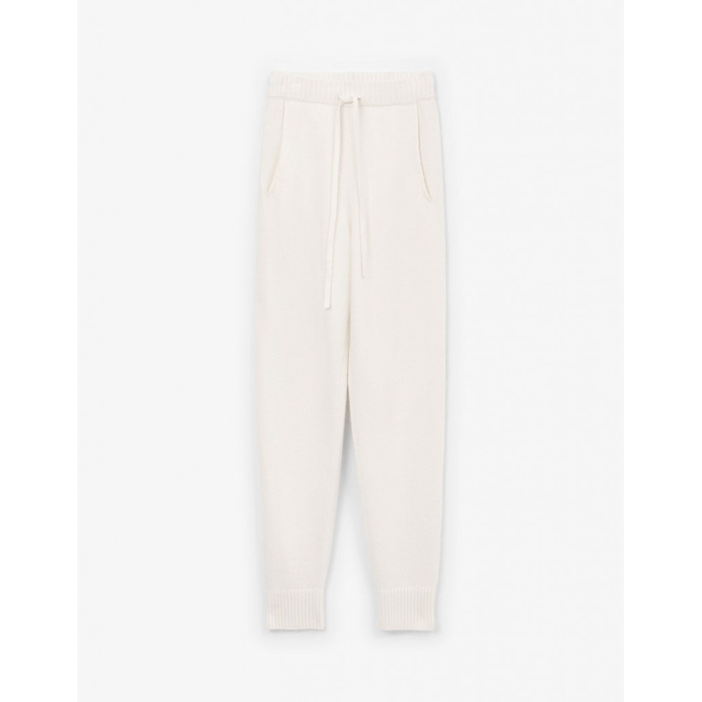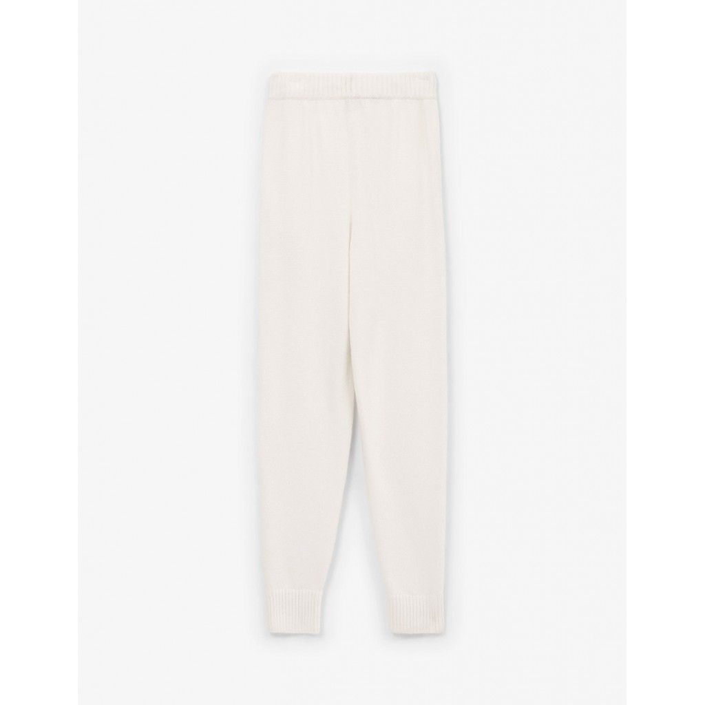 Вязаные брюки-джоггеры в благородном молочном цвете - отличный вариант для сухой и прохладной погоды межсезонья. Лаконичный форма без лишних деталей, мягкость, пластичность делают брюки незаменимыми для создания непринужденных и расслабленных образов. Брюки связаны плотным формоустойчивым переплетением из смесовой пряжи с добавлением ангорской шерсти. Пояс на резинке с кордами создает важный комфорт в эксплуатации вещи. Брюки имеют два боковых кармана.
