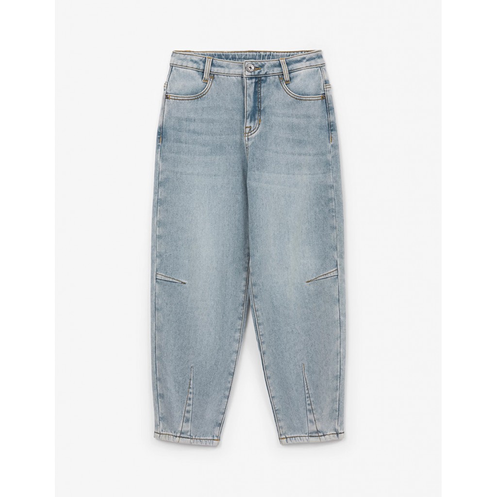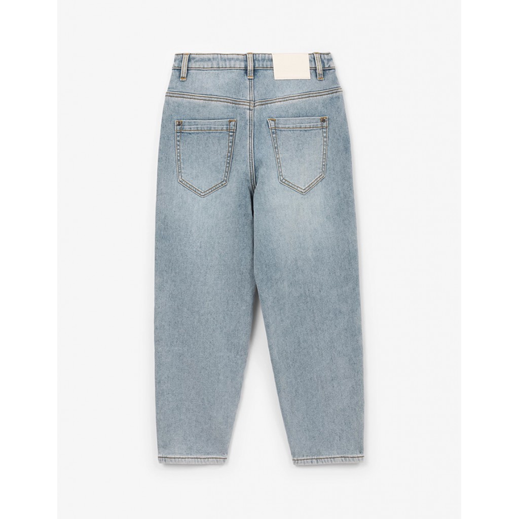 Утепленные джинсы силуэта Mom-fit - основа осенне-зимнего прогулочного гардероба. Мягкие, уютные, джинсы на флисе высокой посадки позволят девочке чувствовать себя комфортно в самые холодные и ненастные дни. Модная варка и потертости, защипы в коленной зоне придают джинсам стильный современный вид. Джинсы застегиваются на молнию и пуговицу.