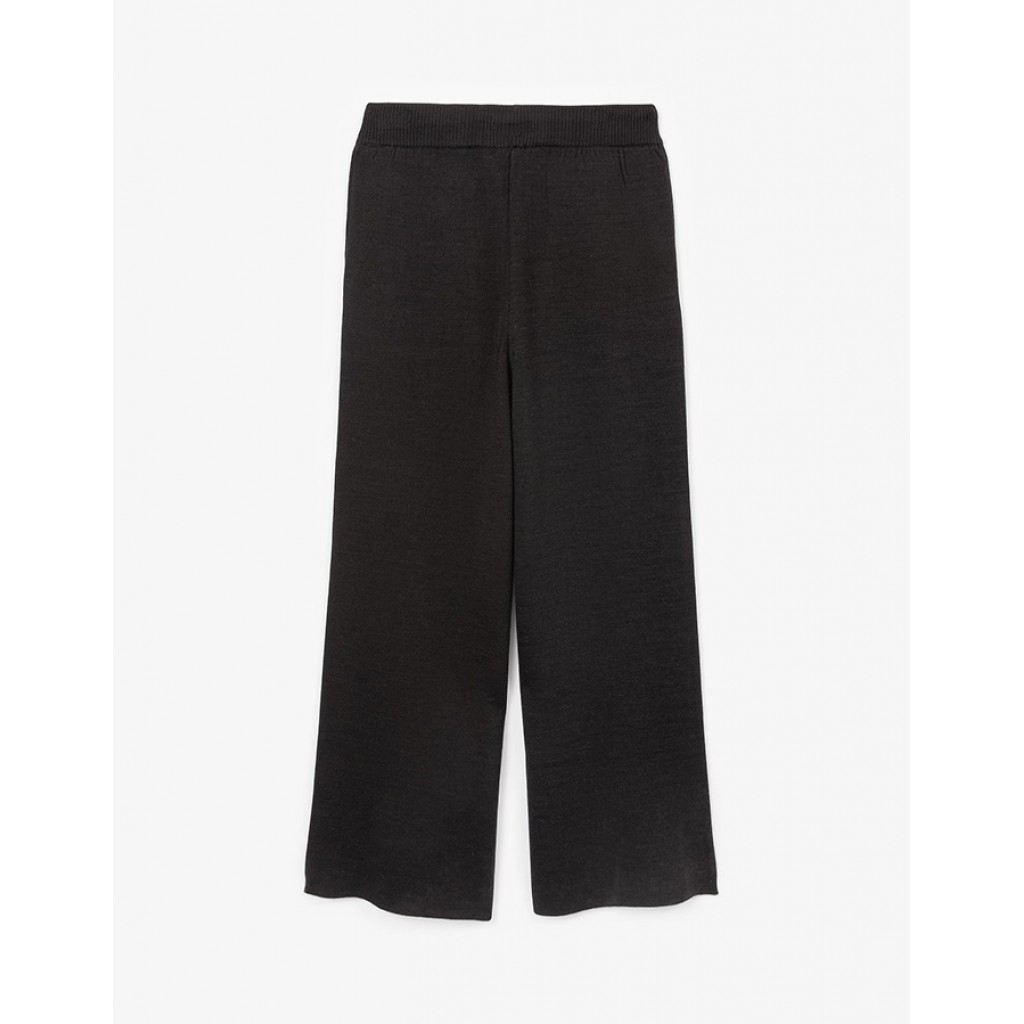 Вязаные брюки c высокой посадкой силуэта палаццо - отличный вариант для сухой и прохладной погоды межсезонья. Лаконичный форма без лишних деталей, мягкость, пластичность, практичность делают брюки незаменимыми для создания непринужденных и расслабленных образов девочки. Брюки связаны плотной гладью из теплой полушерстяной пряжи. Пояс на резинке с кордами создает важный комфорт в эксплуатации вещи. Брюки имеют два боковых кармана со скосами.