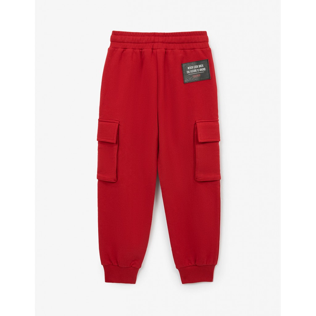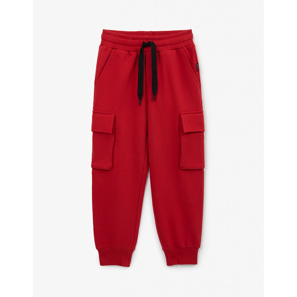 Брюки-джоггеры из хлопкового футера с мягкой петельчатой изнанкой - основа практичного и функционального осеннего гардероба ребенка. Трендовый красный цвет и объемные функциональные карманы-карго придают брюкам острый, модный, небрежный вид, делают трикотажные штаны для мальчика дерзкими и драйвовыми. Карманы в боковых швах, пояс на резинке с кордами создают удобство в эксплуатации вещи. В оформлении модели использована небольшая контрастная нашивка.