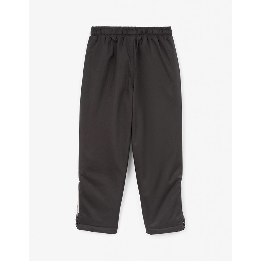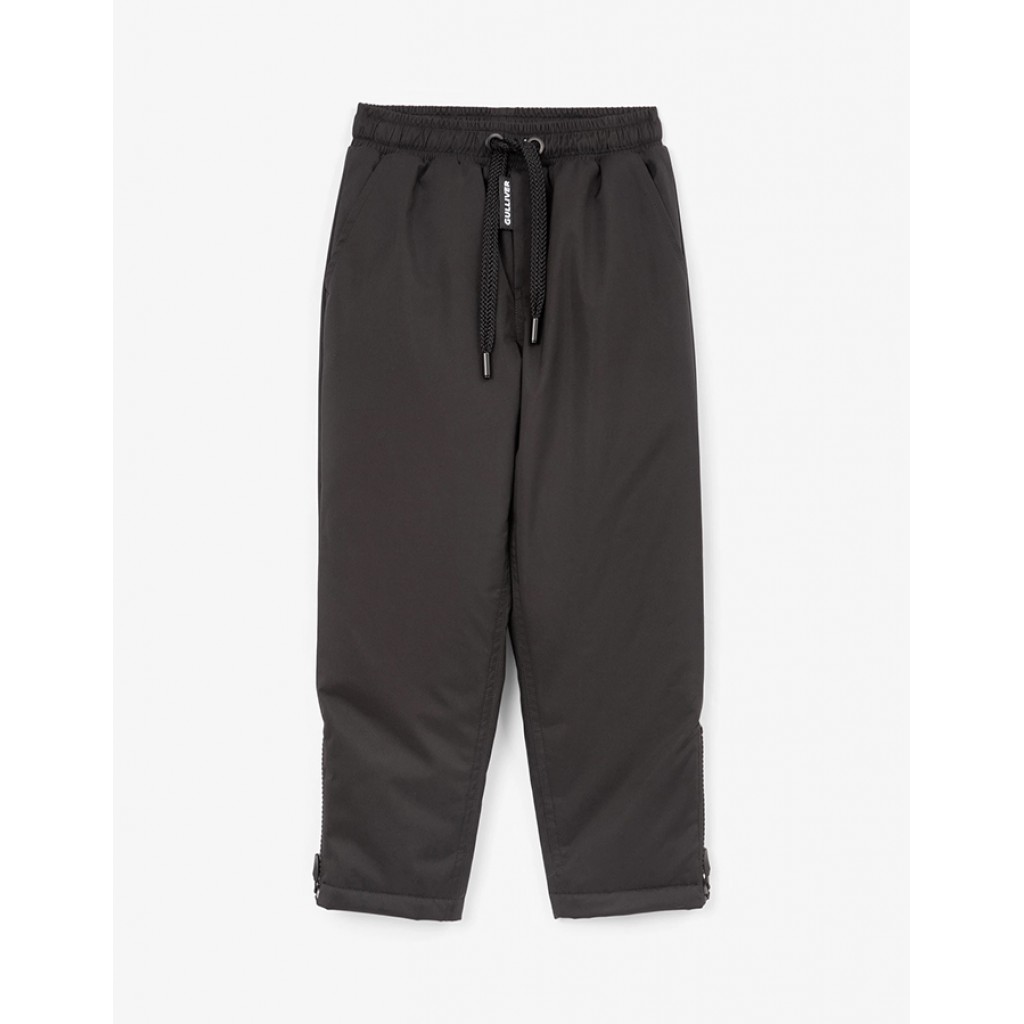 Черные брюки на синтепоне - важнейший элемент демисезонного гардероба мальчика. Утепленные брюки выполнены из матовой плащовки, обладающей влагоотталкивающими и ветрозащитными свойствами, что особенно важно в холодный сезон. Пояс на резинке с кордами плотно прилегает к талии. Молнии со светоотражающими элементами на нижней части брюк позволяют корректировать объём изделия внизу и способствуют безопасности мальчика в тёмное время суток.