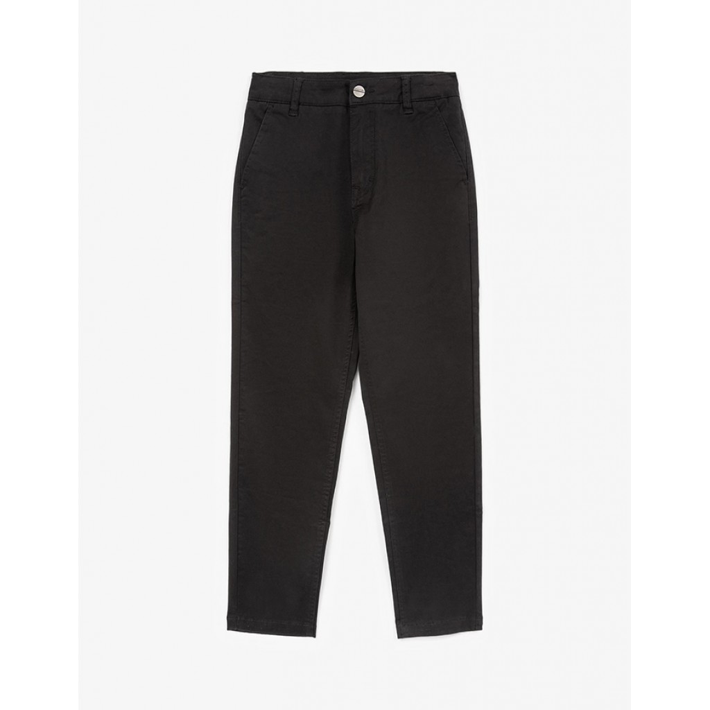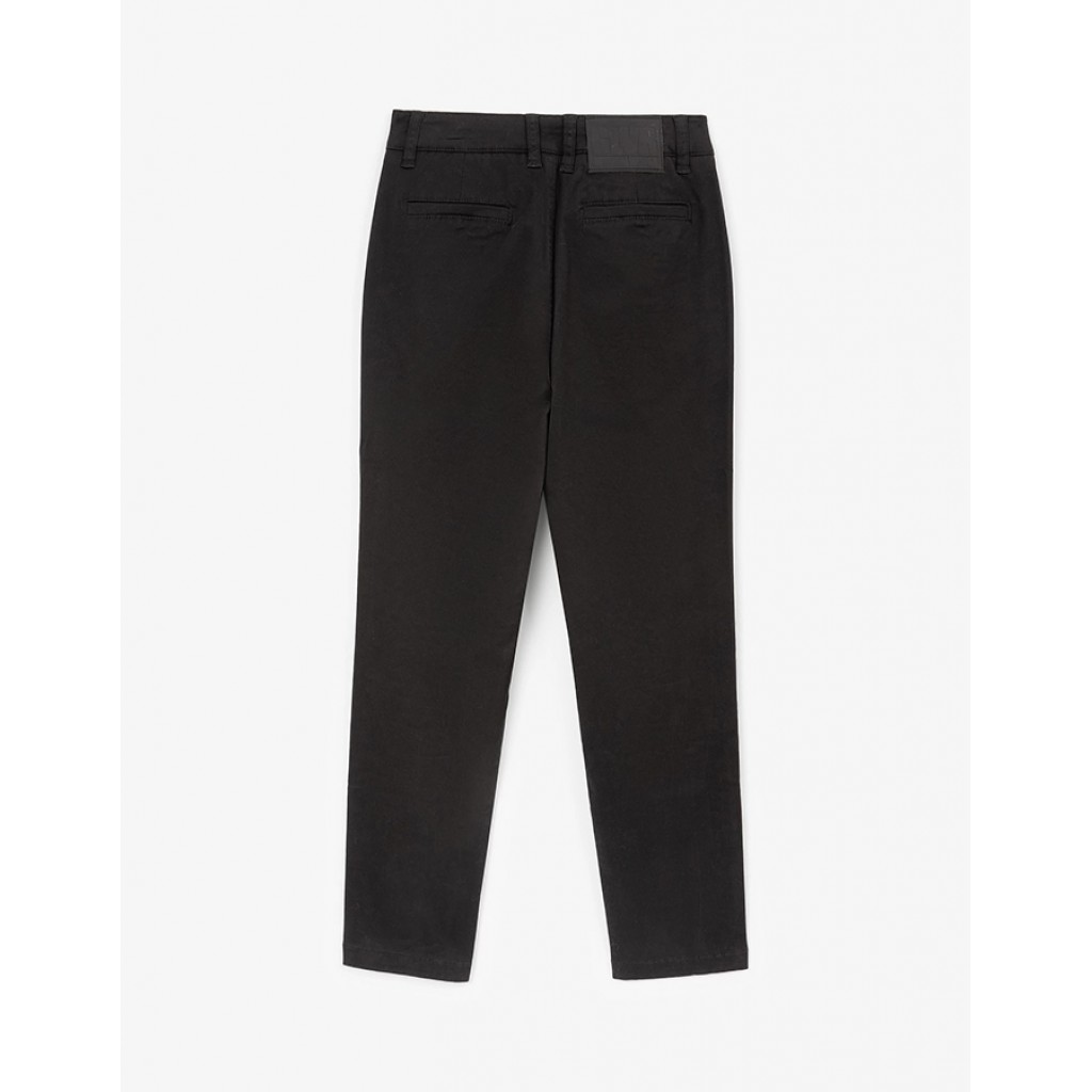 Черные зауженные к низу брюки – основа модного осеннего образа в стиле смарт кэжуал. Брюки-чиносы выполнены из плотного хлопкового твила с эластаном, имеющего гладкую матовую поверхность. Брюки имеют карманы со скосами, функциональные задние карманы-листочки, застегиваются на молнию и пуговицу. Внутренняя регулировка пояса с помощью эластичной тесьмы позволяет корректировать посадку изделия на мальчиках худощавого телосложения.