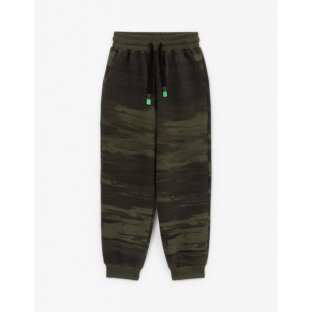 Брюки-джоггеры из хлопкового интерлока с брутальным динамичным рисунком - основа практичного и функционального гардероба подростка. Боковые карманы-листочки, пояс на резинке с кордами создают удобство в эксплуатации вещи.