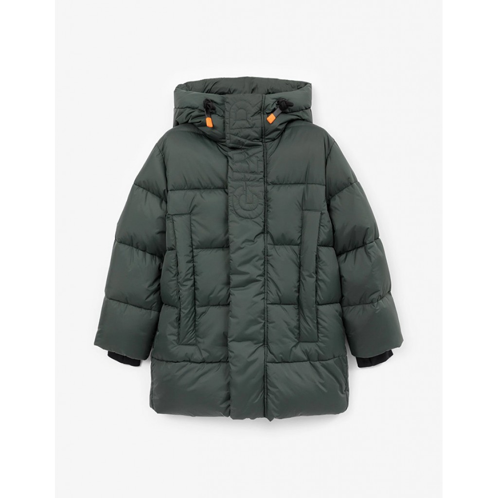 Стеганое полупальто прямой свободной формы проявит себя с лучшей стороны в суровых зимних условиях! Полупальто на искусственному пуху выполнено из плотной матовой влагостойкой плащовки на тонкой мягкой плащевой подкладке, что делает его теплым, практичным, износостойким, отлично подходящим для прогулок и активного отдыха. Несмотря на комфортную базовую форму и крой, полупальто обладает целым рядом любопытных дизайнерских фишек, существенно выделяющих его из аналогов. Глубокий капюшон с контрастными кордами и брендированной резиновой нашивкой, удлиненные карманы-листочки на тракторных молниях с двумя пуллераим, акцентная широкая ветрозащитная планка со стегаными шрифтовыми элементами в верхней части делают полупальто образцом стильной однотонной вещи с интересными акцентами. Полупальто застегивается на двухзамковую тракторную молнию, имеет внутреннюю утяжку по линии талии. Ветрозащитная планка фиксируется с помощью потайных кнопок. На спинке изделия размещен светоотражающий элемент, способствующий безопасности подростка в темное время суток.
