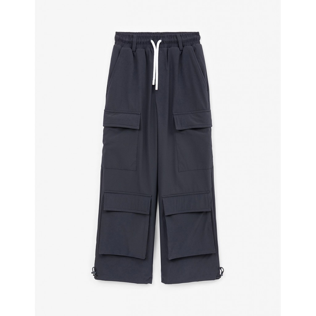 Синие плащевые брюки на флисе - маст-хэв практичного и функционального осенне-зимнего гардероба мальчика. Пояс на резинке с кордами способствуют комфортной посадке изделия на фигуре. Утяжки по низу брюк позволяют придать брюкам форму джоггеров, что весьма актуально в ненастный дождливый день. Брюки прямого свободного кроя имеют две пары карманов карго, задние карманы с клапанами и боковые карманы со скосом, способствующие комфортной эксплуатации изделия энергичным подростком.