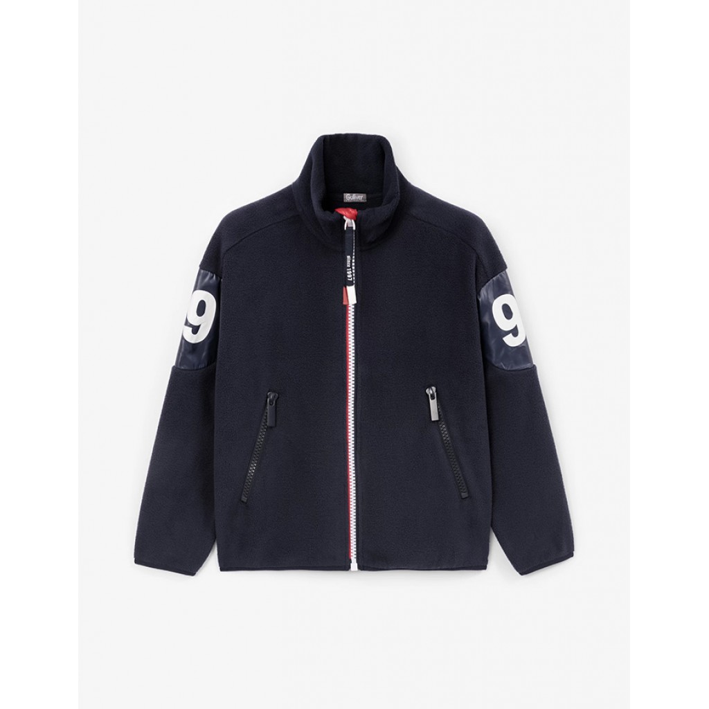 Синяя распашная толстовка из уютного флиса - яркий запоминающийся элемент осеннего образа, построенный на узнаваемых приметах спортивного стиля. Колорблокинг, плащевые вставки на рукавах, создающие интересную игру фактур, крупные цифры, тракторная молния на двухцветной тесьме, карманы с застежкой на молнию отражают вайб коллекции Gulliver "Колледж", вдохновленной атмосферой частных школ, спортивных команд, объединенных едиными визуальными символическими атрибутами. Силуэт умеренныый оверсайз позволяет носить толстовку и как верхний слой - осенью, и как внутренний слой под куртку или пальто - зимой, существенно усиливая теплозащитные свойства любого зимнего аутфита.