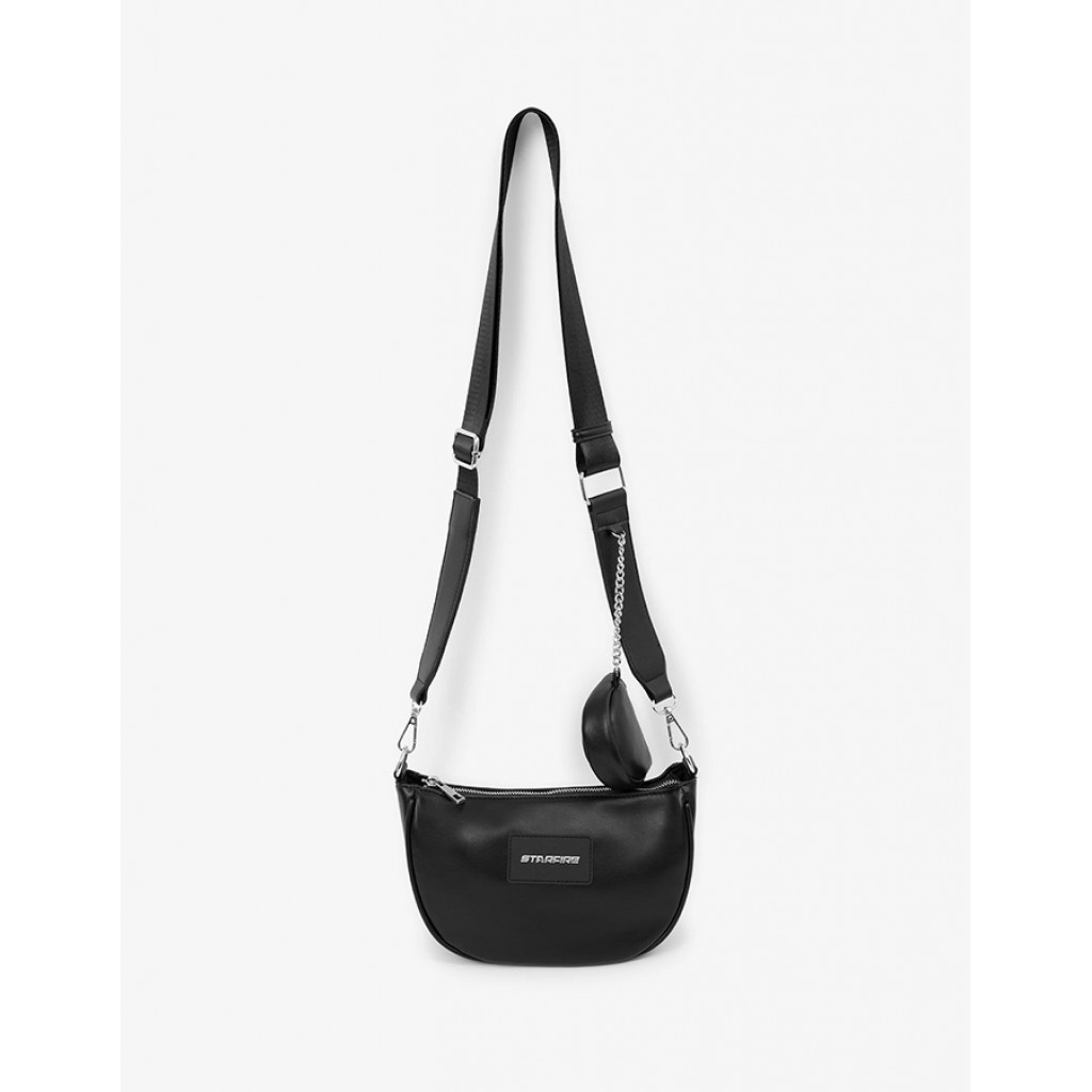 Элегантная черная сумка из мягкой экокожи прекрасно впишется и в нарядные, и в повседневные осенне-зимние образы девочки. Фишка модели - в дополнительной мини-детали на цепочке, идеально подходящей для хранения наушников, ключей или других важных мелочей. Внутренняя организация сумки — свободное пространство с небольшим накладным карманом. В оформлении модели использована акцентная нашивка с шрифтовым принтом.