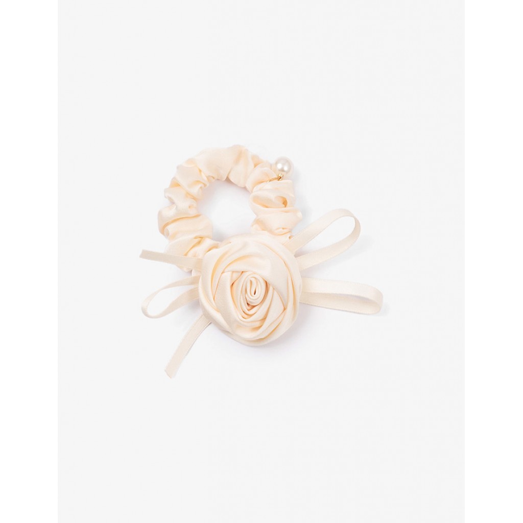 Эта резинка для волос молочного цвета с изящным объемным декором идеально завершит праздничный или повседневный образ и придаст причёске дополнительный объём.