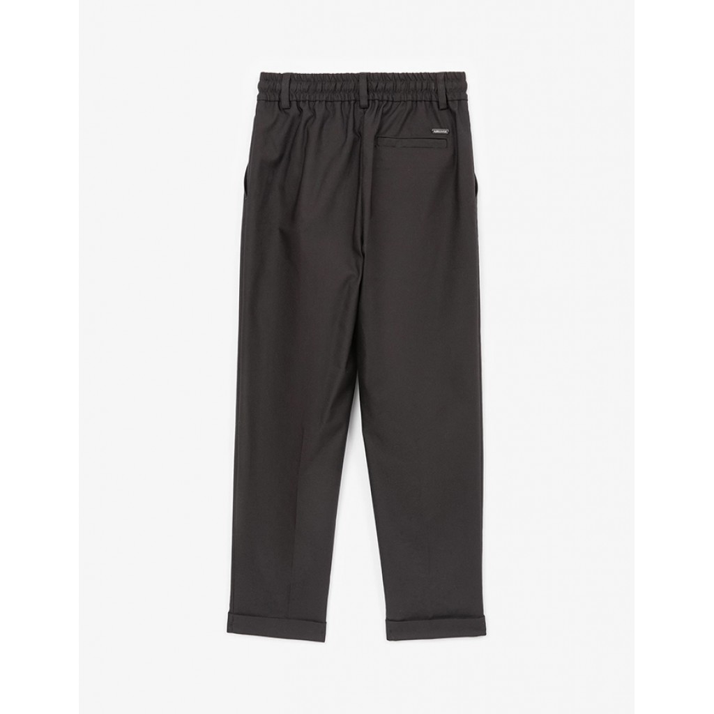 Прямые черные брюки прекрасно впишутся и в нарядные, и в повседневные образы мальчика. Брюки выполнены из гладкого хлопкового текстиля, на частичной шелковистой вискозной подкладке. Важная деталь модели - пояс на резинке с кордами, придающая брюкам модный современный вид. Карманы со скосами, функциональный задний карман-листочка и традиционная застежка на молнию, пуговицу и крючок создают удобство в эксплуатации вещи.