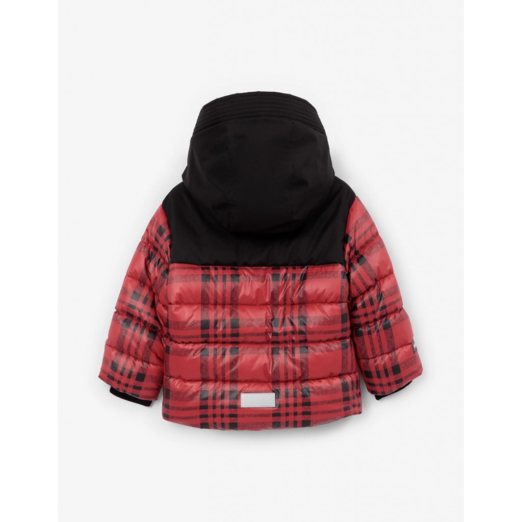 Демисезонная куртка для мальчика на искусственном пуху, построенная на сочетании влагостойких разнофактурных плащовок в модную клетку "буффало" и однотонной черной, - лучший выбор для прохладного времени года! Очень яркая, интересная, динамичная, детально проработанная с точки зрения удобства и функциональности, куртка оправдает ожидания от стильной, добротной, практичной вещи. Высокая стойка, глубокий съемный капюшон с застежкой на велкро, удобные карманы-листочки, трикотажные манжеты, мягкая хлопковая трикотажная подкладка, внутренние лямки, позволяющие в помещении носить ее за спиной как рюкзак, делают куртку очень комфортной для ребенка. Куртка застегивается на тракторную молнию с внутренней ветрозащитной планкой. На спинке изделия размещена светоотражающая нашивка, способствующая безопасности мальчика в темное время суток.